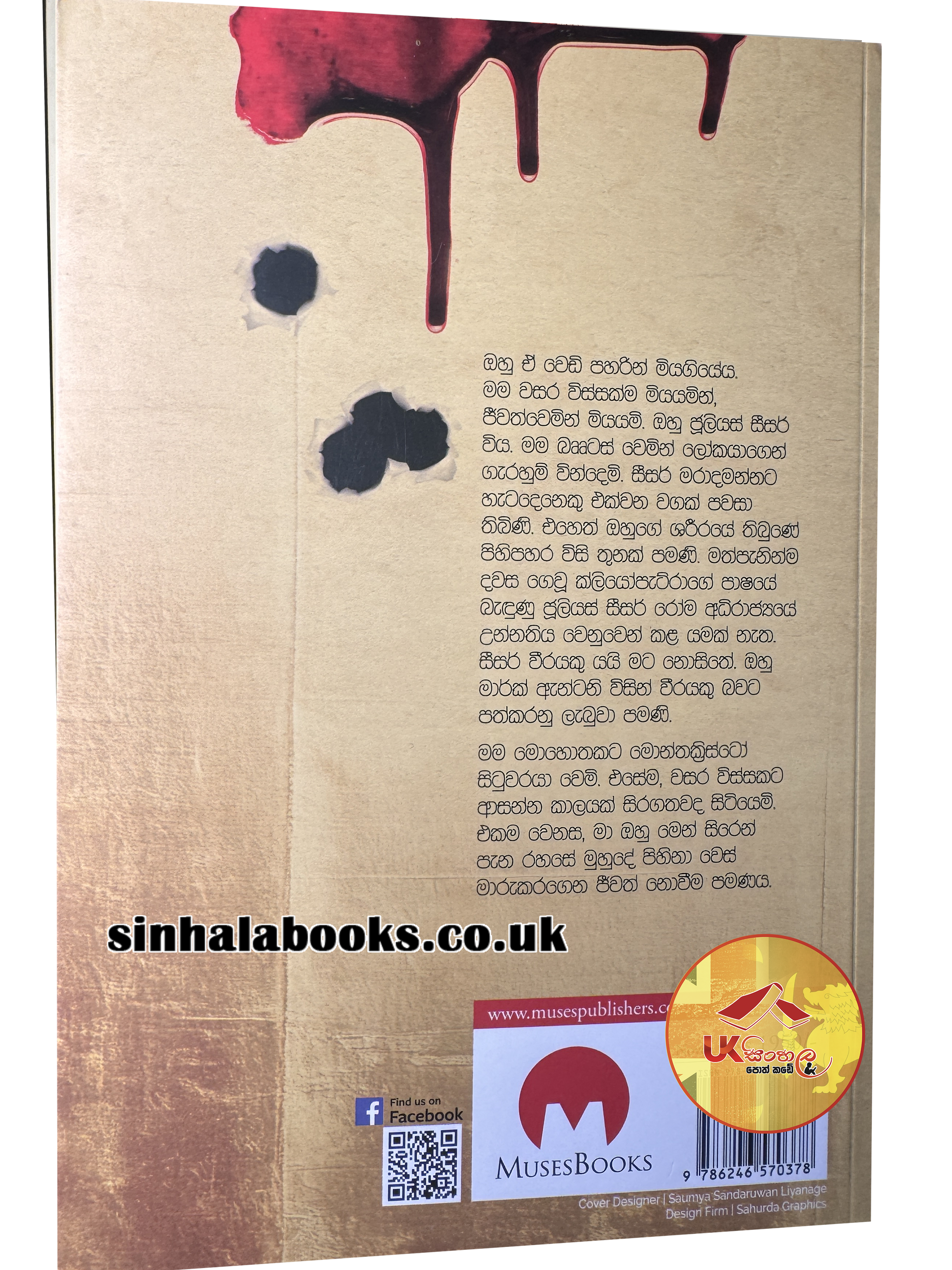 ඔහු ඒ වෙඩි පහරින් මියගියේය. මම වසර විස්සක්ම මියයමින්, ජීවත්වෙමින් මියයමි. ඔහු ජූලියස් සීසර් විය. මම මාර්ක් ඇන්ටනි වෙමින් ලෝකයාගෙන් ගැරහුම් වින්දෙමි. සීසර් මරාදමන්නට හැටදෙනෙකු එක්වන වගක් පවසා තිබිණි. එහෙත් ඔහුගේ ශරීරයේ තිබුණේ පිහිපහර විසි තුනක් පමණි. මත්පැනින්ම දවස ගෙවූ ක්ලියෝපැට්රාගේ පාෂයේ බැඳුණු ජූලියස් සීසර් රෝම අධිරාජ්යයේ උන්නතිය වෙනුවෙන් කළ යමක් නැත. සීසර් වීරයකු යයි මට නොසිතේ. ඔහු මාර්ක් ඇන්ටනි විසින් වීරයකු බවට පත්කරනු ලැබුවා පමණි.